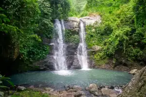 Berlokasi di Desa Pakuan Lombok Barat, air terjun ini masih sangat asri dan alami. Destinasi wisata Indonesia timur ini sedang ramai dikunjungi wisatawan.
