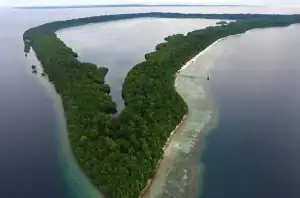 Destinasi wisata Indonesia Timur ini merupakan taman laut yang memiliki kawasan atol terbesar dan sebaran terumbu karang terluas hingga mencapai 500 km2.