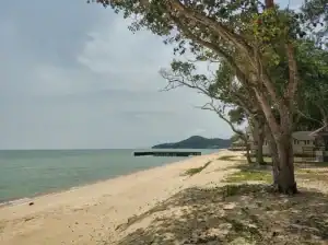 Pantai ini adalah pantai dengan garis pantai yang panjang dan lurus. Pasirnya putih bersih, pepohonan di tepi pantai berbaris rapi dan menyenangkan untuk dilihat.
