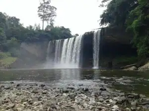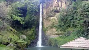 Air terjun setinggi 40 meter ini juga akan memanjakan anda dengan pemandangan pepohonan besar berusia puluhan tahun.