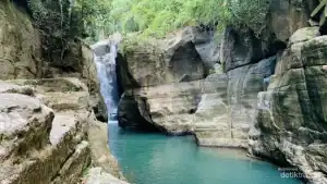 Air terjun yang satu ini benar-benar unik. Terletak di dalam sebuah goa, pemandangannya sangat indah dan membius mata.