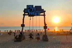 Objek wisata alam ini terletak di Canggu Kuta Utara Badung. Barisan pasir hitam di pantai ini tak mengalahkan panorama matahari tenggelam yang begitu menawan. Terlalu indah untuk dilewatkan.